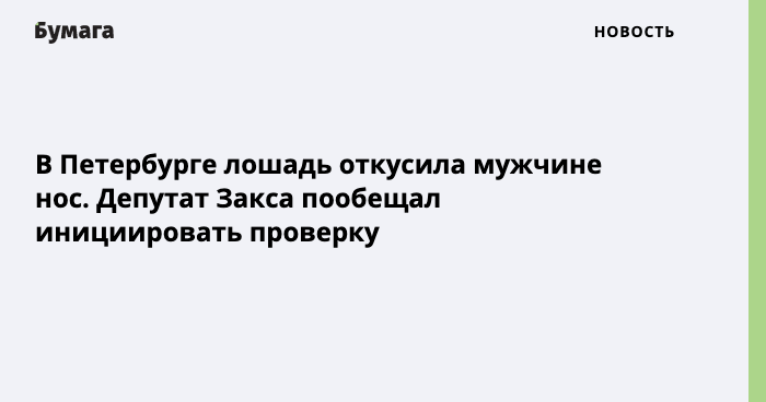 Как пишет «Фонтанка», инцидент произошел на пересечении Литейного проспекта и улицы Белинского. По версии ГУ МВД по Петербургу, лошадь откусила мужчине нос, когда он попытался поцеловать ее. Сейчас пострадавший в больнице.