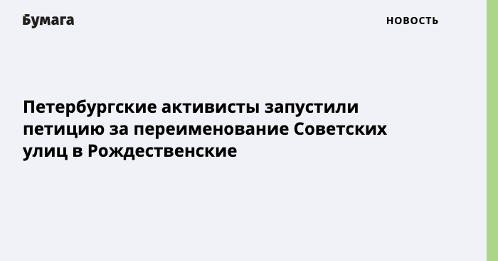 Петербургские активисты запустили петицию за переименование Советских улиц в Рождественские