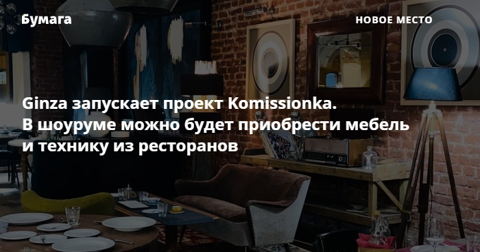 Ресторанная группа Ginza Project запускает в Петербурге новый проект — магазин Komissionka в историческом здании завода Степана Разина на Курляндской улице, 48, сообщили «Бумаге» представители компании.