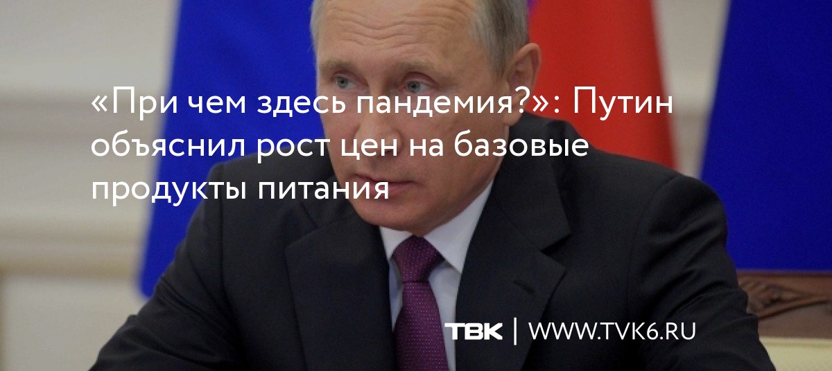 «А вот рост на базовые продукты питания – это пандемией не объяснишь. При чем здесь пандемия? Это динамика цен на мировых рынках и попытка подогнать внутренние цены под мировые, а также использовать экспортные возможности», – заявил Путин.