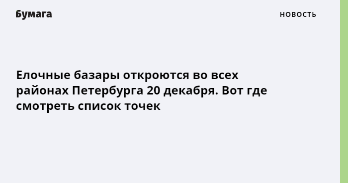 Елки будут продавать по 70 адресам во всех районах города. Например, точки появятся на Старо-Петергофском проспекте, на набережной канала Грибоедова, на углу Пионерской и Большой Пушкарской, а также на улице Кораблестроителей.