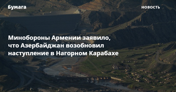 Пресс-служба Минобороны Армении заявила, что вооруженные силы Азербайджана в субботу возобновили наступательные действия на юге Карабаха.