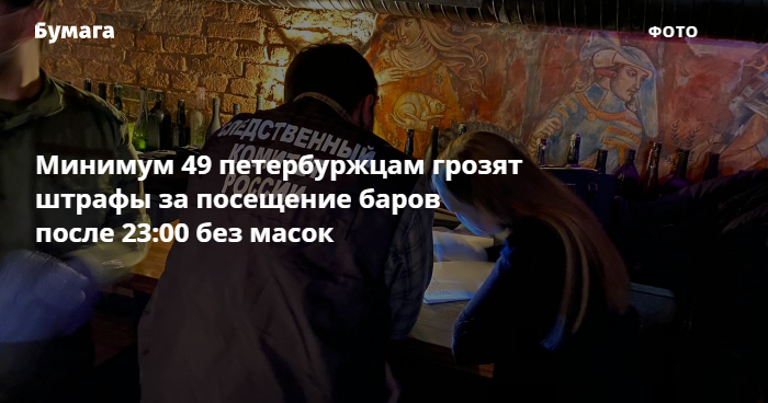 Власти Петербурга планируют привлечь к административной ответственности 49 горожан, которые посетили заведения общепита ночью и не использовали СИЗ. Об этом сообщают на сайте Смольного.