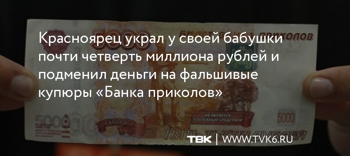 Красноярец украл у своей бабушки почти четверть миллиона рублей и подменил деньги на фальшивые купюры «Банка приколов»