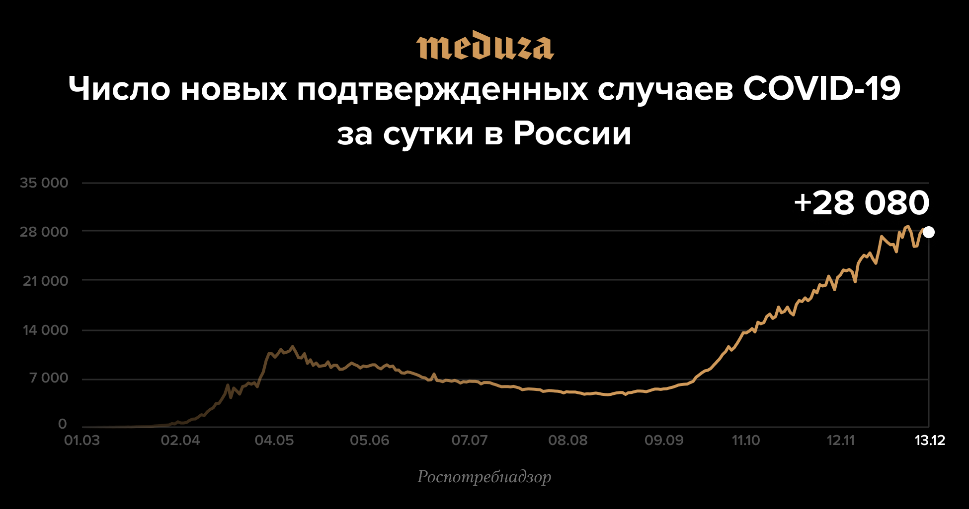 В России за сутки зафиксировано 28 080 новых случаев коронавирусной инфекции. На 57 меньше, чем днем ранее