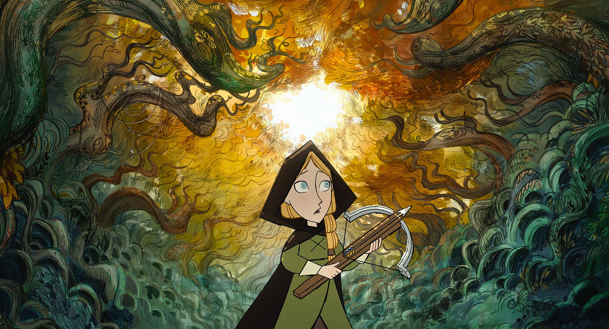 Наконец, третья и центральная тематическая доминанта мультфильма, еще органичнее ложащаяся на сознание современной публики, это одновременное пробуждение женского начала и эмансипация тинейджера в мире, управляемом взрослыми. Робин с первой сцены отказывается от навязанной социальной модели: не желает убираться дома и ждать отца с охоты, мечтает сама ставить капканы в лесу. Недаром ее постоянный спутник — охотничья птица, сокол Мерлин. Встреченные Робин в лесу «ходящие с волками» — тоже женщины, мать и дочь: как и в древней чаще «Принцессы Мононоке», в волчьей стае царит матриархат. Женщина ближе к природе, она более чутка и менее догматична, чем подчиненный иерархиям мужчина. Так было и в «Песни моря» (очевидно, что лесная колдунья напрямую следует матери-шелки, а охотник Гудфеллоу — наследник по прямой смотрителя маяка).