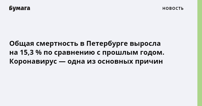 Читайте подробный разбор «Бумаги» о том, сколько людей умерло из-за коронавируса в Петербурге и почему не все попадают в статистику. Следите за развитием пандемии в Петербурге по нашим графикам.