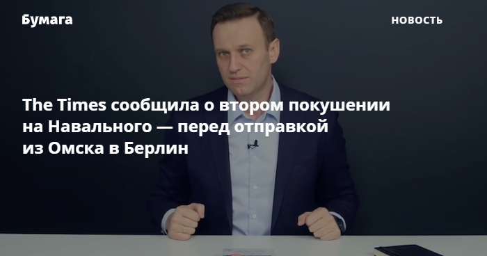 Британская газета The Times со ссылкой на анонимные источники в западных спецслужбах пишет, что Алексея Навального пытались повторно отравить, когда политик лежал в коме в омской больнице. Материал издания доступен по платной подписке, цитаты в переводе приводит «РБК».