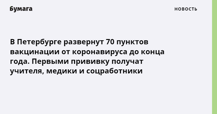 В Петербурге к концу года откроют 70 пунктов вакцинации от COVID-19