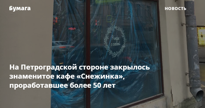 Знаменитое кафе «Снежинка» на углу Малого проспекта Петроградской стороны и улицы Ленина закрылось. Об этом сообщает корреспондент «Бумаги».