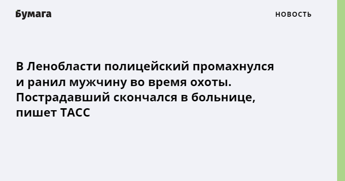 Инцидент произошел 13 декабря недалеко от песчаного карьера в поселке Ольшаники. Сотрудник УМВД России по Приморскому району Петербурга промахнулся и выстрелил в другого охотника. Пострадавшего госпитализировали, в больнице он умер от полученных ран.