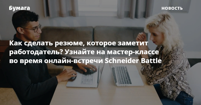 Ксении также можно направить свое резюме, чтобы она разобрала его и дала советы по тексту в ходе мастер-класса. Отправляйте письмо на почту ksenia.stukalova@se.com до 16 декабря, указав тему «Резюме для Schneider Battle».