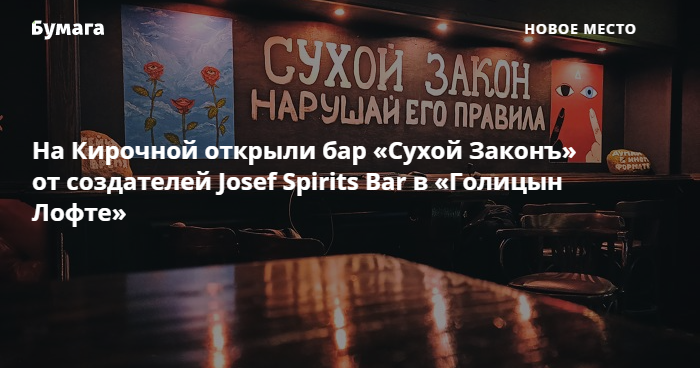 На Кирочной улице, 11 открыли бар «Сухой Законъ», рассказал «Бумаге» один из создателей заведения Станислав Гирифанов. Ранее он занимался проектом Josef Spirits Bar — то заведение работало в кластере «Голицын Лофт».