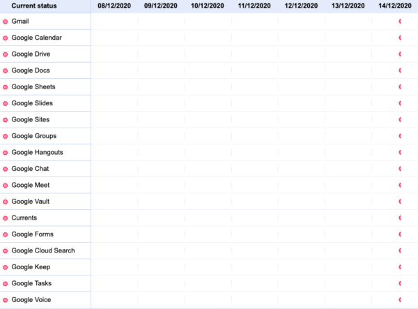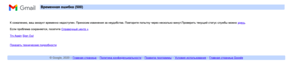 Обновление: на сайте Google появилась информация о сбоях сервисов. Пользователи рассказали, что примерно через полчаса после начала сбоя некоторые сервисы стали восстанавливаться.