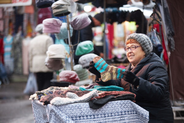 Delivery Club скупит вязаные носки у бабушек, торгующих на улицах. И подарит их курьерам