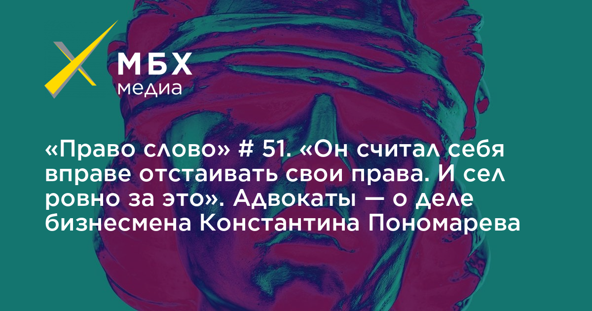 «Право слово» # 51. «Он считал себя вправе отстаивать свои права. И сел ровно за это». Адвокаты — о деле бизнесмена Константина Пономарева
