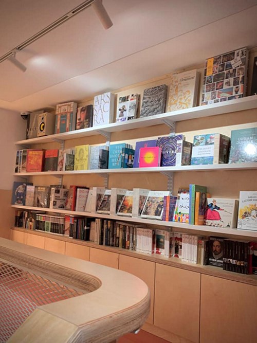 В магазине работает кафе, там же будут проводить презентации и другие события. Так, после открытия «Мост» принял участие в фестивале Art Weekend — в книжном провели выставку графики.