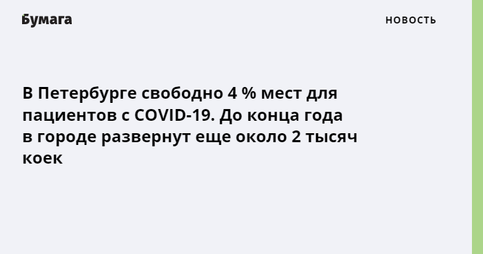В Петербурге осталось 4 % свободных коек для пациентов с коронавирусом