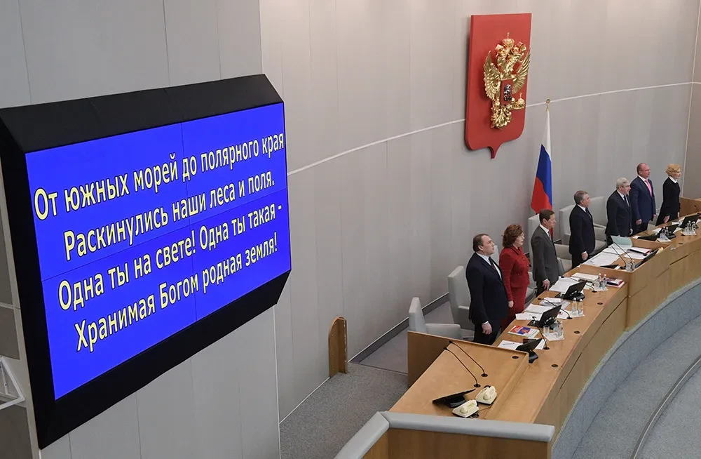 …Смотрю в интернете подробный сюжет 2011 года с выступлением председателя правительства в Государственной думе. Председатель благодарит парламентариев за замечательную работу, вот и гимн заиграли, все встают… В газете потом напишут, что лучше всех пел депутат Кобзон Иосиф Давыдович, но отчетливо видно, что даже рот открывают, помимо Кобзона, далеко не все, складывается даже впечатление, будто абсолютное большинство депутатов слов главной песни не знают…