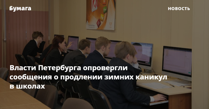 Комитет по образованию Петербурга опроверг информацию о продлении зимних каникул в школах, распространяемую в соцсетях. Об этом сообщили в телеграм-канале комобра.