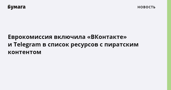 Европейская комиссия добавила «ВКонтакте» и Telegram в «Список наблюдения за контрафактом и пиратством». Соответствующий документ, датированный 14 декабря, опубликован на сайте ведомства.