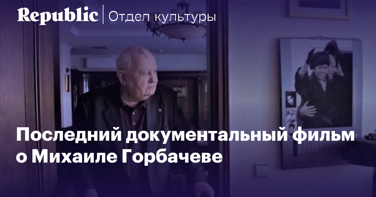 Режиссер задает вопросы за кадром. На экране — Михаил Сергеевич Горбачев. Грузный, отекший, с трудом встающий на ноги, руки уперты в ходунки. Спокойный, сдержанный, откровенный. Независимый от мнений о себе и от съемок, которые, впрочем, хочет доделать, потому что силы на исходе. «Еще вопрос», — раздается откуда-то эхо, из недр дома. «А мне что», — отстраняется Горбачев.