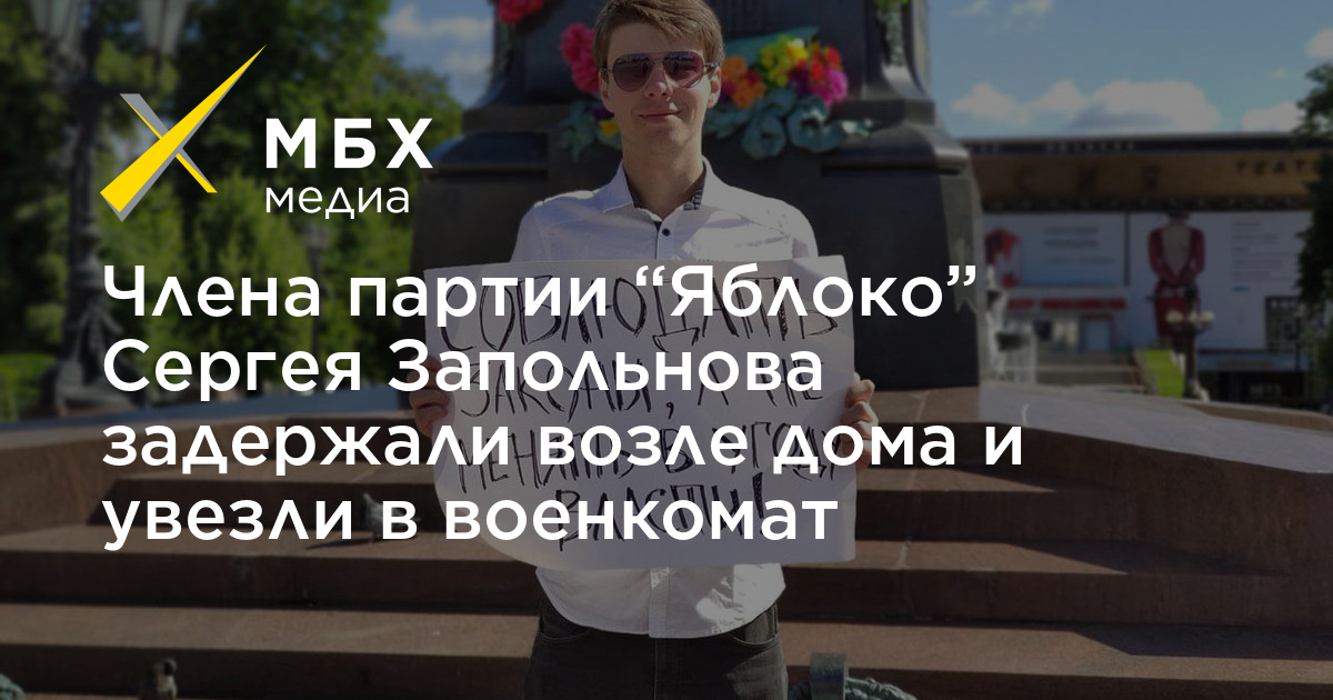 Активиста и члена партии «Яблоко» задержали Сергея Запольнова возле дома и увезли в военкомат. Об этом «МБХ медиа» сообщил заместитель председателя московского «Яблока» Кирилл Гончаров.