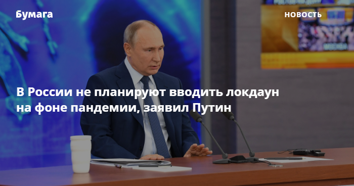 Путин уточнил, что локдаун не потребуется, если россияне будут выполнять все требования санитарных врачей. Он также отметил, что никто не знает, сколько продлится пандемия. Президент подчеркнул, что это будет зависеть от формирования коллективного иммунитета и вакцинации.