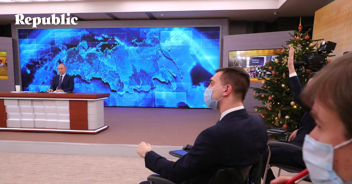 17 декабря состоялась ежегодная пресс-конференция Владимира Путина. Президенту обустроили студию в резиденции в Ново-Огарево, куда пустили лишь несколько журналистов из кремлевского пула. Пресс-секретарь Дмитрий Песков и основная часть журналистов собрались в московском Центре международной торговли. На связи с Песковым и Путиным были студии в крупных городах России, где собрались местные корреспонденты, а также колл-центр, где Наиля Аскер-Заде давала слово волонтерам, собиравшим вопросы граждан по телефонной горячей линии.