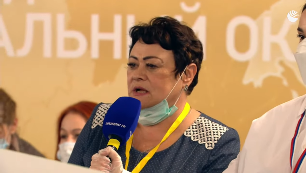 Людмиле Кейбол, редактору газеты "Змеиногорский вестник" из Змеиногорска Алтайского края, удалось задать вопрос Путину из новосибирской студии. Она спросила, поставил ли он себе прививку от коронавируса и хватит ли вакцины всем россиянам? Путин на это ответил, что обязательно привьется, но пока до его "возрастной зоны" вакцины не добрались.