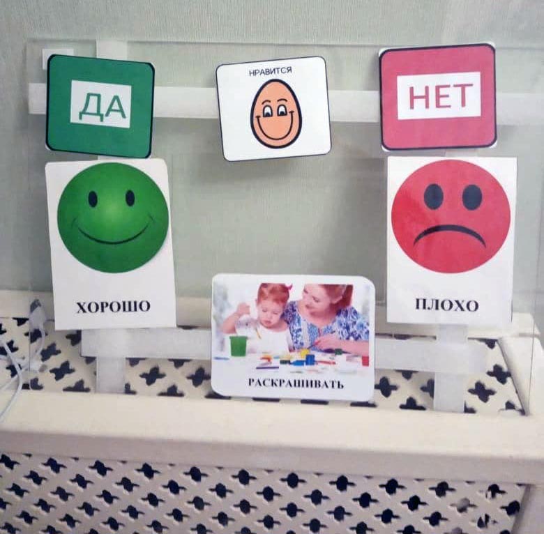 Доска НастиФото: из личного архива И я не знаю, как это спросить. Вместо этого я прошу показать планшет, который они используют на занятиях по альтернативной коммуникации. Это не электронное устройство, с ним Настя не справляется, это просто деревянная рамка, на которую наклеены слова «привет», «пока», «нравится», «не нравится», «пить», «есть», «хватит», «еще». Много это или мало? Смогла бы я жить, если бы это были мои единственные слова? По крайней мере, с ними уже легче. Можно сказать глазами: «Ты (взгляд) нравишься (взгляд) мне (тут придется догадаться)».