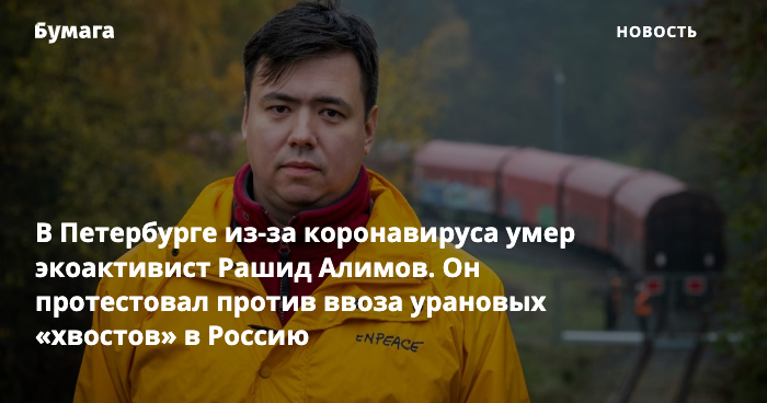В Петербурге от коронавируса умер экоактивист Рашид Алимов