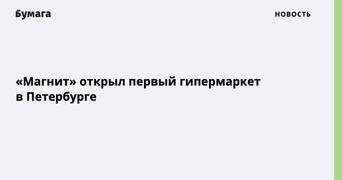 Торговая сеть «Магнит» открыла первый гипермаркет в Петербурге. Новый магазин площадью 4,3 тысячи квадратных метров открылся на Кушелевской дороге, 1. Об этом «Бумаге» сообщили в пресс-службе компании.