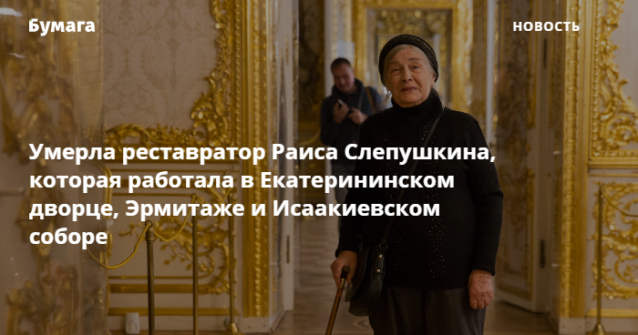 На 93-м году жизни скончалась художник-реставратор Раиса Слепушкина, которая восстанавливала петербургские дворцы и другие здания. Об этом сообщили в пресс-службе ГМЗ «Царское Село».