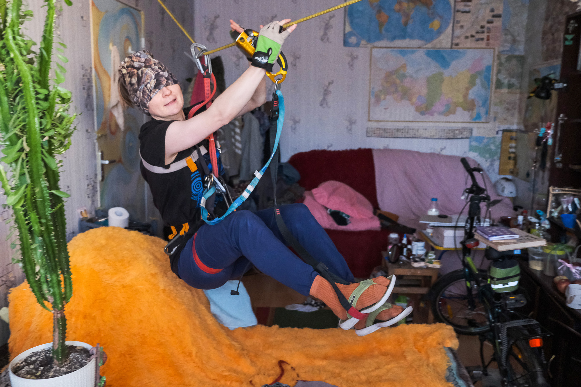 — Я увлекаюсь спелеологией (исследованием пещер — прим. «Бумаги»), и так как все тренировки отменили, то повесила веревки дома. Для оттачивания мастерства нужно постоянство. Чтобы было не скучно, я засекала время прохождения дистанции и записывала результат, рекорды выделяла цветными маркерами — так и соревновалась сама с собой. Во время карантина я также часто выходила на пробежки, даже похудела.