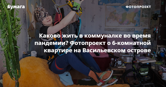 Тяжело ли соблюдать самоизоляцию в коммуналке, что делать, если кто-то из жителей квартиры заболел коронавирусом, а кухня на всех одна, и как заниматься скалолазанием в собственной комнате? «Бумага» публикует фотопроект Ольги с монологами ее соседей. Снимки были сделаны в апреле и декабре.
