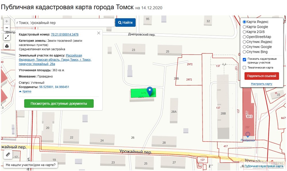 Земельный участок под домом на Урожайном переулке, 26а уже можно найти на Публичной кадастровой карте Томска: