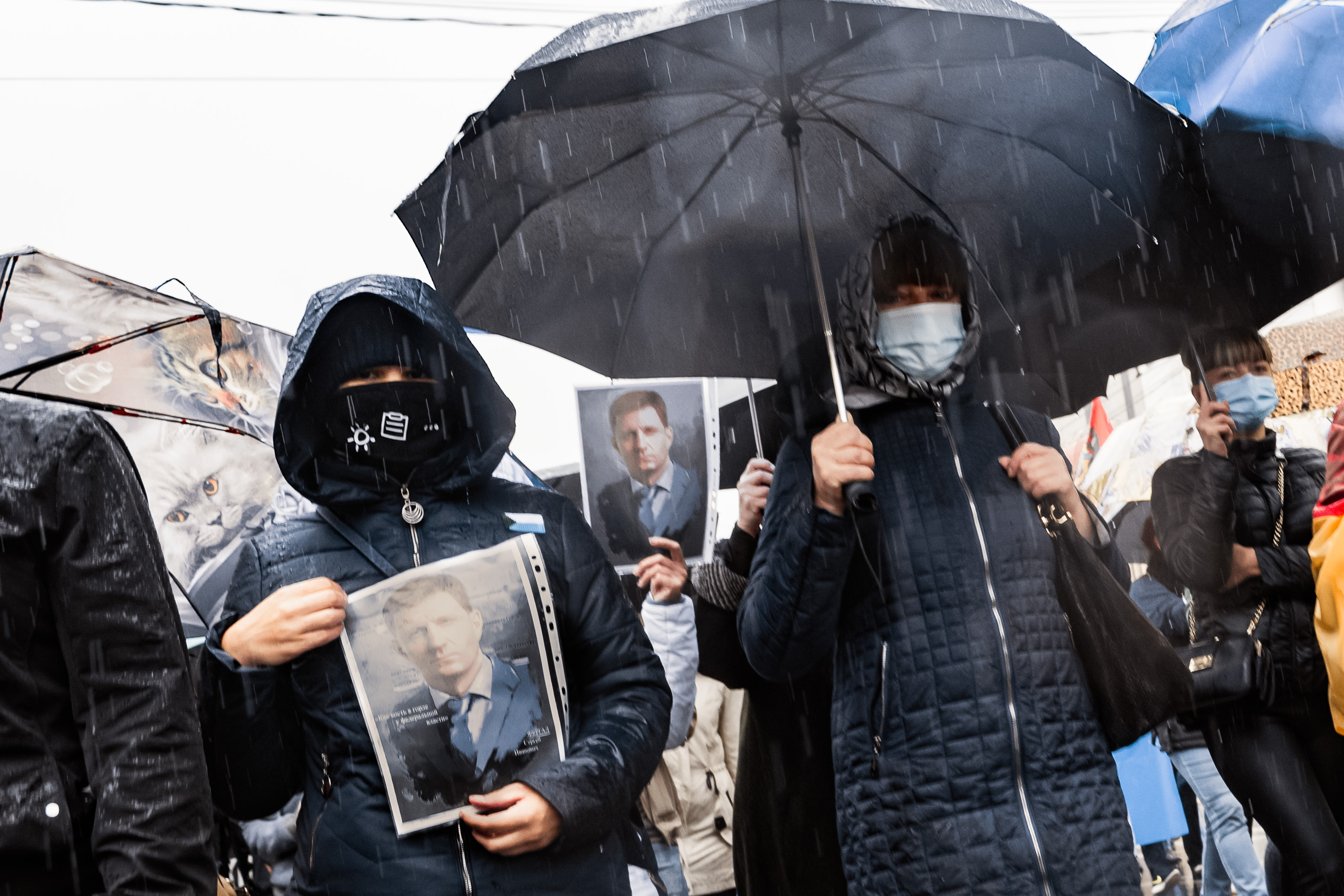 Акции протеста в поддержку Фургала продолжаются с июля. Протестующие требуют справедливого судебного процесса над бывшим губернатором, обвиняемым в организации нескольких заказных убийств. Его сторонники уверены, что дело политическое, Фургал на выборах победил кандидата от "Единой России" Вячеслава Шпорта, хотя до последнего утверждал, что не будет составлять ему конкуренции и обещал работать в его команде.