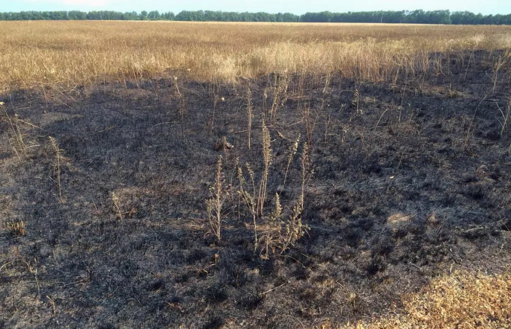 – видимое частичное вспахивание части поля в период с 16 по 21 июля не являлось началом плановой уборки урожая ввиду отсутствия следов остающейся за уборочными комбайнами соломы; на перепаханном участке отсутствует какая-либо растительность; – перепаханный участок отделен от остальной части поля земляным валом, который мог быть сооружен для защиты от огня оставшегося на поле урожая (сухой пшеницы);