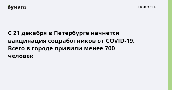С 21 декабря в Петербурге начнется вакцинация социальных работников от коронавируса. Это следует из информационной справки, подготовленной межведомственным координационным советом.