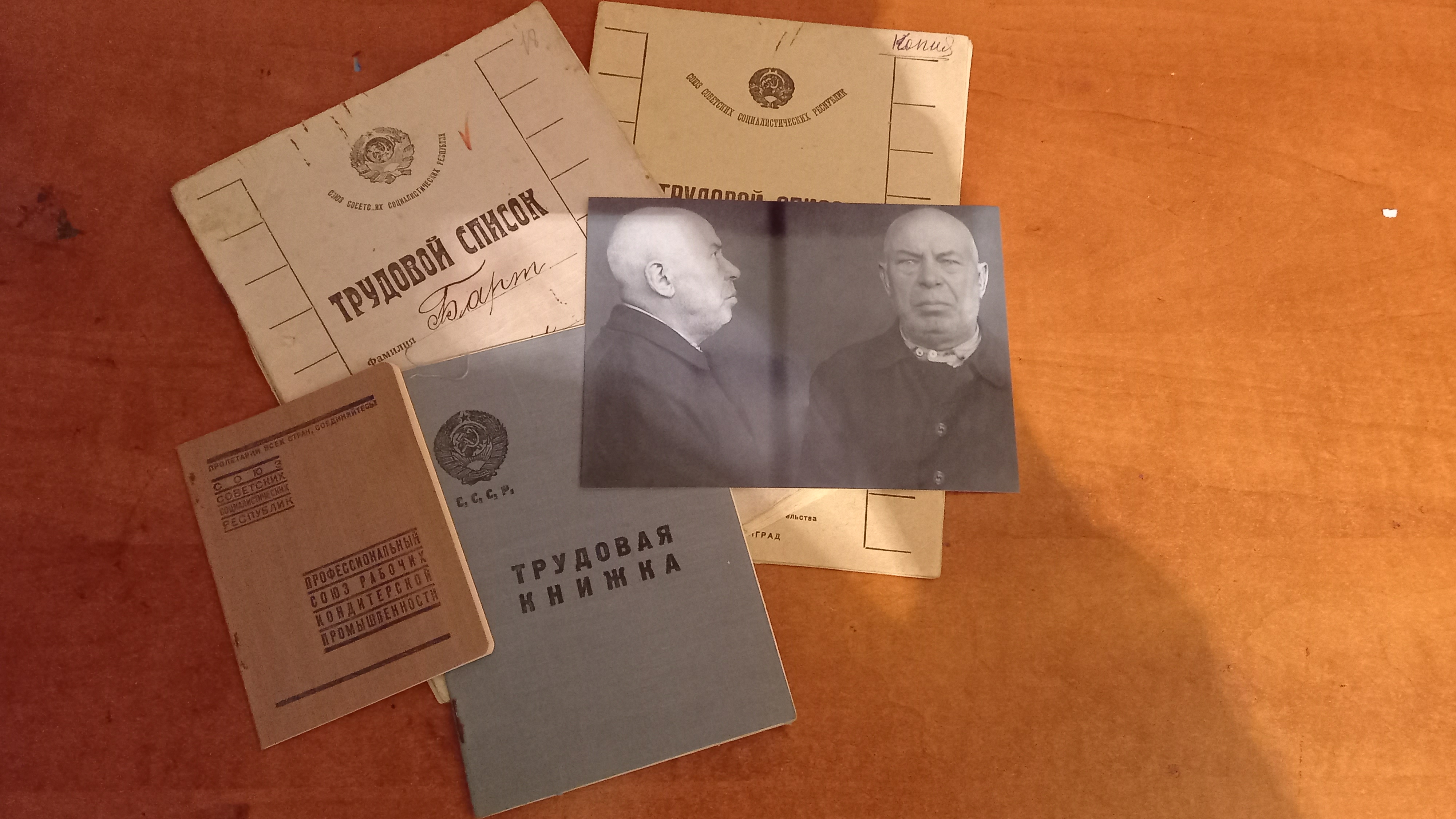 – Да я им благодарен за четкую работу, если честно. Я не хочу никого обвинять, проклинать. От своих родственников я за всю жизнь узнал меньше, чем из этого дела. И я очень благодарен женщине, которая непосредственно мной занималась, сидела со мной, пока я дело читал. Однажды она ко мне подошла, дала листок бумаги – пиши: прошу выдать мне вещи моего прадеда Барта М. А., взятые при аресте. И мне их выдали – через 80 лет. И они лежат у меня на столе – две трудовые книжки, профсоюзный билет, справочник полиграфиста. Я это расценил это как акт человеколюбия – им это не нужно, а я по этим документам проследил, где прадедушка учился, где работал, узнал кучу адресов. Ничего не стоило все это выкинуть и сжечь, но отдали мне – спасибо!