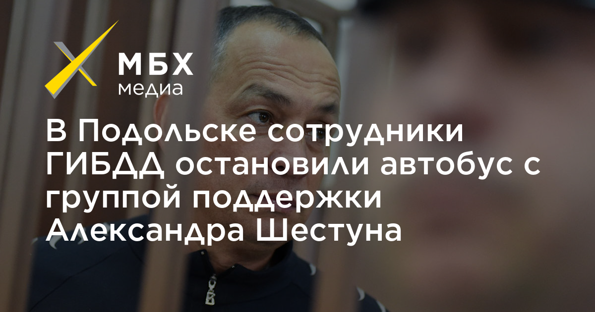 В Подольске сотрудники ГИБДД остановили автобус с группой поддержки бывшего главы Серпуховского района Подмосковья Александра Шестуна, всех тщательно проверяют. Об этом рассказала «МБХ медиа» его жена Юлия Шестун.