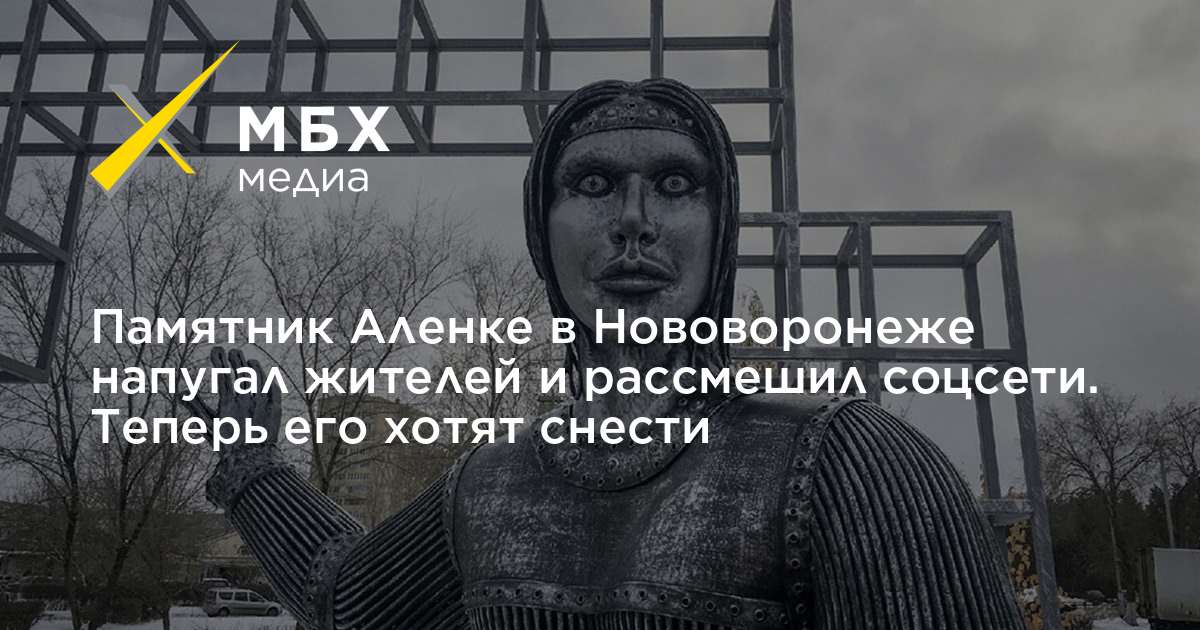 В Нововоронеже на днях открыли памятник Аленке, которая, по легенде, является основательницей села Новая Аленовка. Монумент вызвал неоднозначную реакцию у местных жителей. Одни считают, что новый арт-объект больше напоминает памятник жертвам коронавируса, другие — что для города, рядом с которым находится атомная станция, он вполне подходит. После многочисленных жалоб нововоронежцев памятник решили демонтировать, но фото скульптуры уже разлетелось по соцсетям, породив множество шуток.
