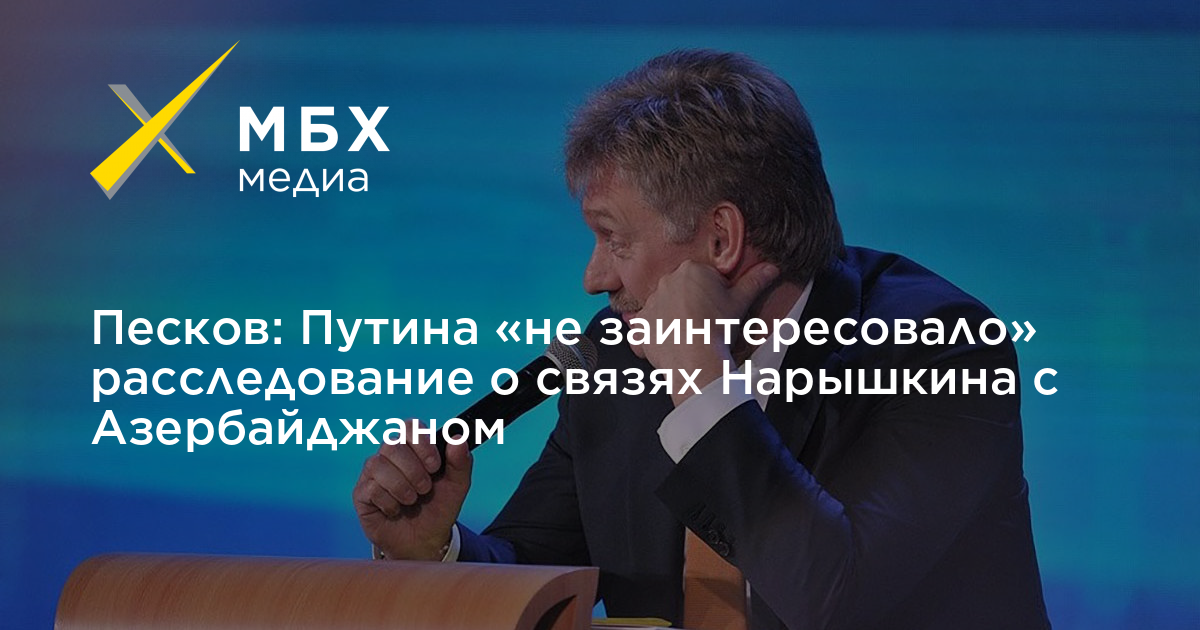 «Расследование о связи Нарышкина с азербайджанской диаспорой не заинтересовало президента. На встрече Путина и Нарышкина это не обсуждалось», — сказал Песков.