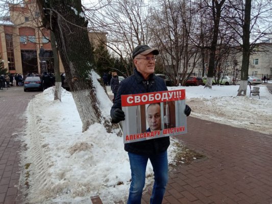 Костюхин стоял с плакатом «Свободу!!! Александру Шестуну».
