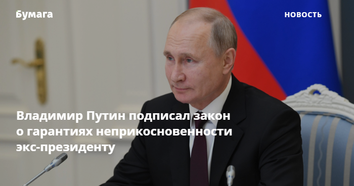 Президент России Владимир Путин подписал закон о гарантии неприкосновенности для бывших президентов страны. Его опубликовали на портале правовой информации.