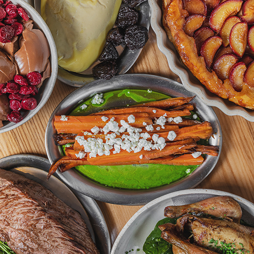 Шеф «Кузни» Руслан Закиров приготовил на Новый год разнообразное меню, в котором можно найти как порционные русские закуски (например, пирожки и холодец), так и блюда на большие компании: запеченную утку, ростбиф из стриплойна и другие позиции. Для заказа доступны также позиции из коптильни, выпечка и восемь десертов.
