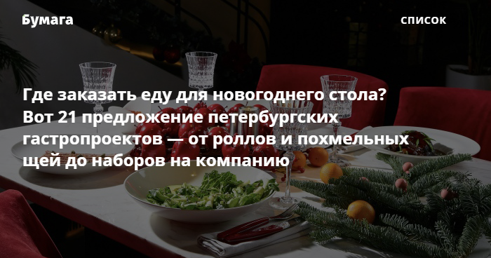Где заказать еду для новогоднего стола? Вот 21 предложение петербургских гастропроектов — от роллов и похмельных щей до наборов на компанию