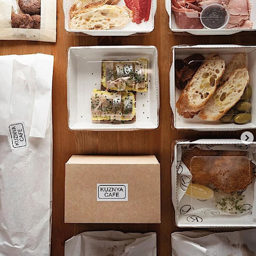 «Общество чистых тарелок» продолжает доставлять коробки с едой. К 31 декабря кафе заготовило бокс с пятью килограммами еды, рассчитанный на пять—шесть человек. В коробку положат салаты, жареную утку, кальцоне с ягненком, киш с диким лососем, пирожные «Картошка», литр безалкогольного глега и другие позиции.