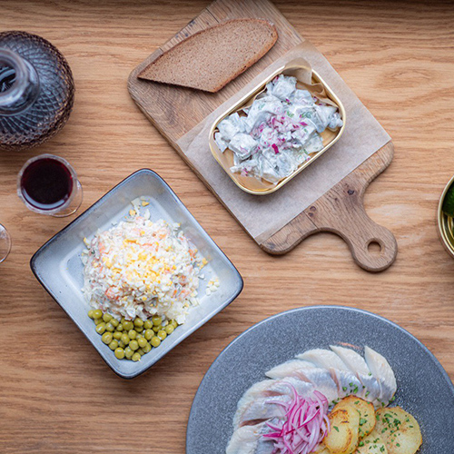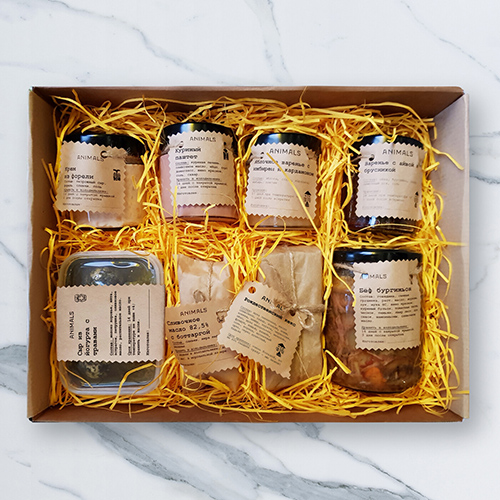 «Локалочка» — сервис доставки от ресторана Animals на улице Некрасова. Петербуржцам предлагают не только традиционный оливье (его готовят с форелью), но и менее очевидные блюда — например, карри с красной рыбой, утиную ножку конфи и говядину по-бургундски. Среди прочих позиций есть большой набор с тартином, намазками и основными блюдами.